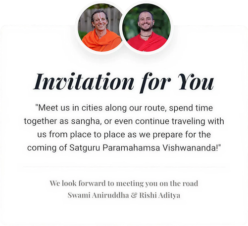 Join us for a deeply uplifting spiritual experience with Swami Aniruddha & Rishi Aditya, featuring soul-stirring kirtan, inspiring satsang, sacred puja, and blessed prasad.